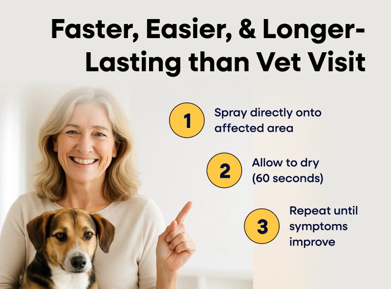 "My dog's constant scratching kept us both up all night. This spray works instantly - we finally sleep again! Doesn't stain the bed or smell like medicine."