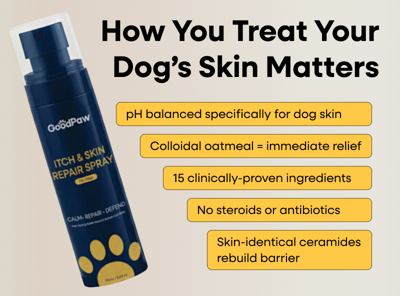 "I spray it after walks and when the licking starts. She settles within minutes — no more 2am scratching sessions."